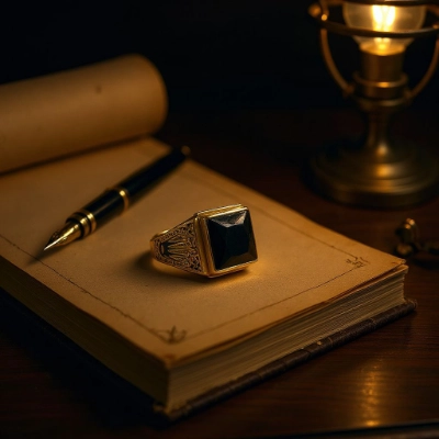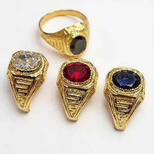 Anillo Sello Hombre Coronas con Piedra Oro 18K 6,5 grs